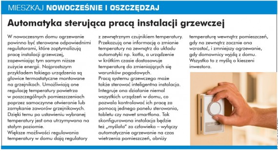 Nowy standard obsługi. Zadaniem nowoczesnych instalacji grzewczych jest także zapewnienie komfortowej obsługi wchodzących w ich skład urządzeń. Instalacja wytwarza i oddaje ciepło do pomieszczeń bez konieczności stałego nadzorowania jej pracy – m.in. automatycznie dostosowując temperaturę we wnętrzach do aktualnych potrzeb.