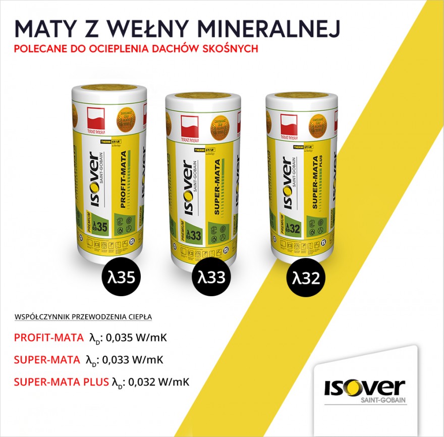 Właściwości termiczne  oznaczamy dwoma parametrami. Pierwszy z nich to współczynnik przewodzenia ciepła λD (lambda deklarowana). Litera "D" oznacza, że to wartość deklarowana zgodnie z przepisami. Lambda pokazuje, ile ciepła przeniknie przez materiał niezależnie od jego grubości. Im mniejsza "lambda", tym lepiej! Najniższą lambdę wśród wełen mineralnych na świecie ma produkowany w Gliwicach ISOVER Multimax 30 (lambda 0,030), niewiele ustępują Super-Vent Plus (0,031) czy produkty w rolkach Super-Mata Plus (0,032) oraz Super-Mata (0,033).